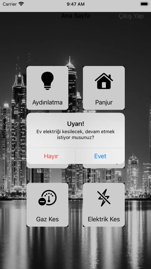 -Aydınlatma: Evin içersinde bulunan lambaları, avizeleri ve LEDleri uzaktan erişimle aç kapat