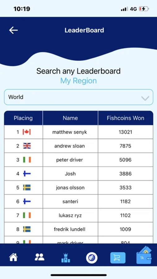 If you Finish in the top 10 on the leaderboard in your country when earning Fishcoins you will be invited to the Fishcoin App world final to represent your country for a chance to become a world champion.