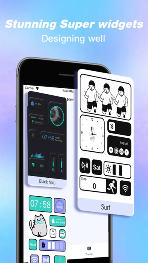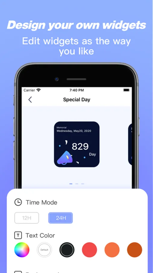 Time, clock, calendar, memorial, system panel, countdown, mixed—pick any widget and get the info you need right from your Home Screen. You can also create your own unique widget by adding photos and changing backgrounds, fonts, and colors.