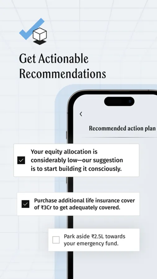 It provides a comprehensive evaluation of your personal finance health, along with customised actionable insights that align with your personality and behavioural traits curated by certified personal finance advisors under our Financial Concierge Team.. Unlike any other financial plans that focus on limited aspects of a your finances - the Financial Wellness Plan offers comprehensive financial planning which includes wealth management, asset management, liability management, emergency planning, tax planning, cash flow planning, will and retirement planning - encompassing all areas such as investments, debt, expense management, emergency savings, insurance.