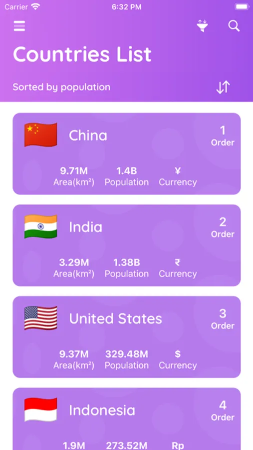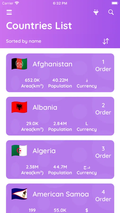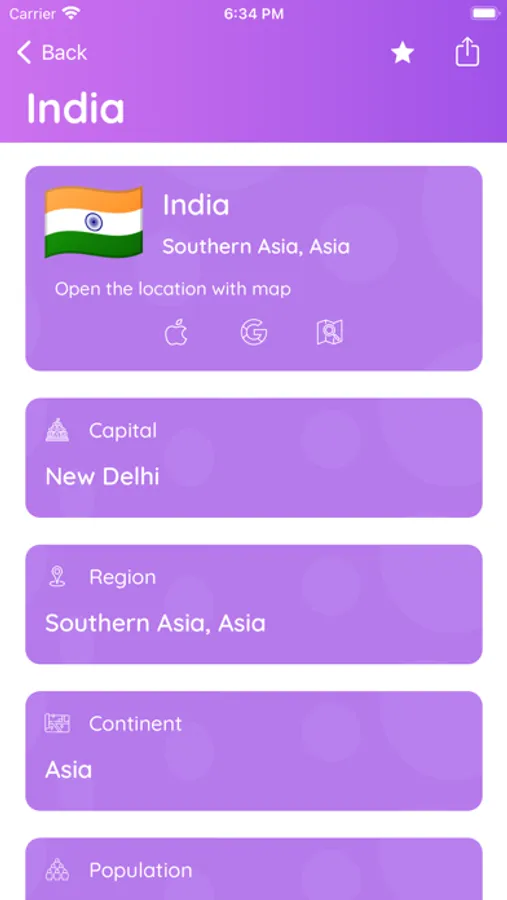 Country List app contains a huge set of countries details like area, population, currency, capitals, region, co-ordinates, continents, time zone and many more information.
