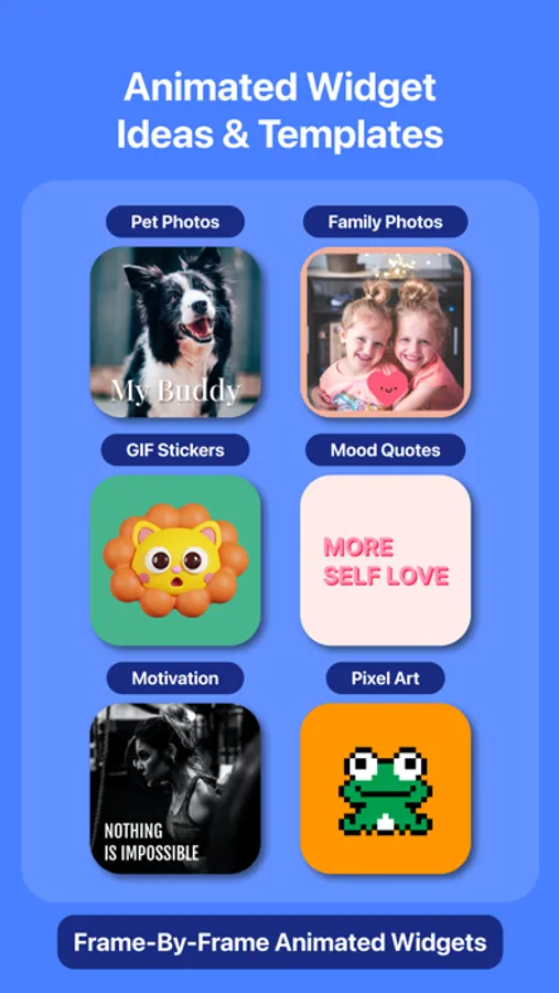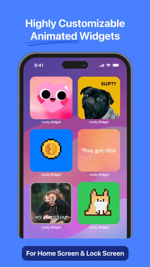 Lively Widgets offers a wide collection of moving GIF stickers & widget presets for you to make custom lock screen widgets and home screen widgets, with cute & cool categories like emojis, animals, sports, self-care, pixel art, nature, love, quotes, etc. The presets collection will only grow bigger over time!