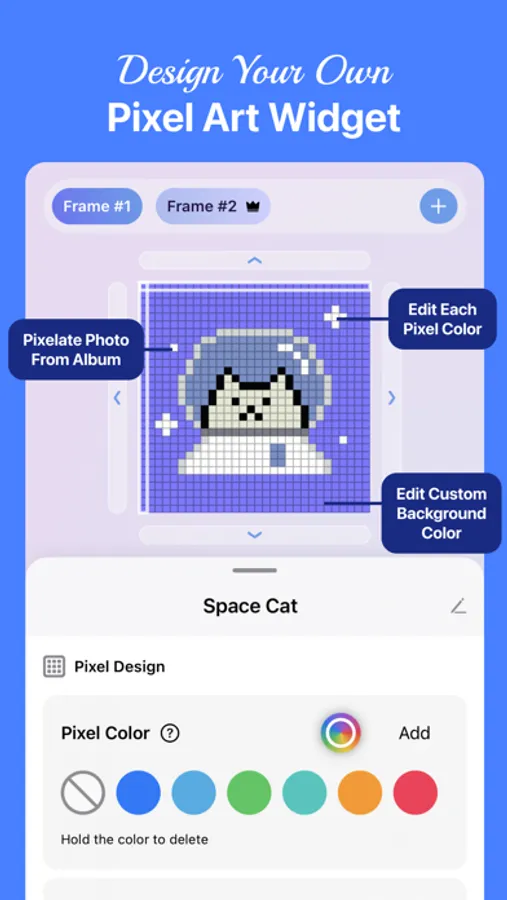 You can also create your own pixel art from scratch using an empty canvas, convert your photos into pixel art, or simply select a pixel art widget from our collection.