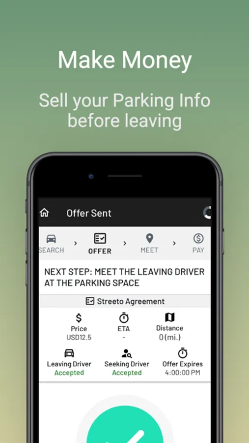 2. The Seeking Driver OFFERS to pay a Streeto Agreement near a desired location.