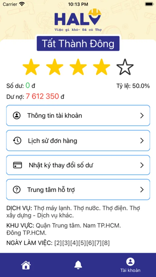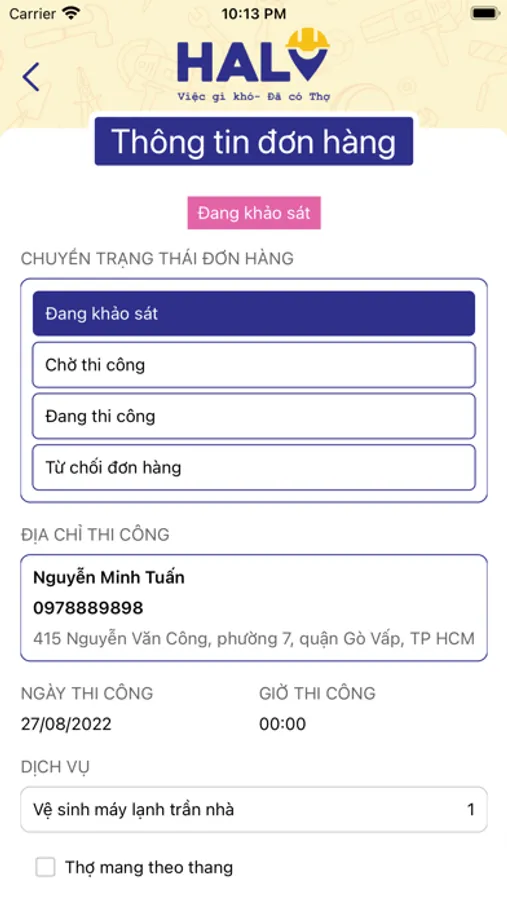 Ứng dụng đặt thợ tới tận nhà, phiên bản dành cho thợ