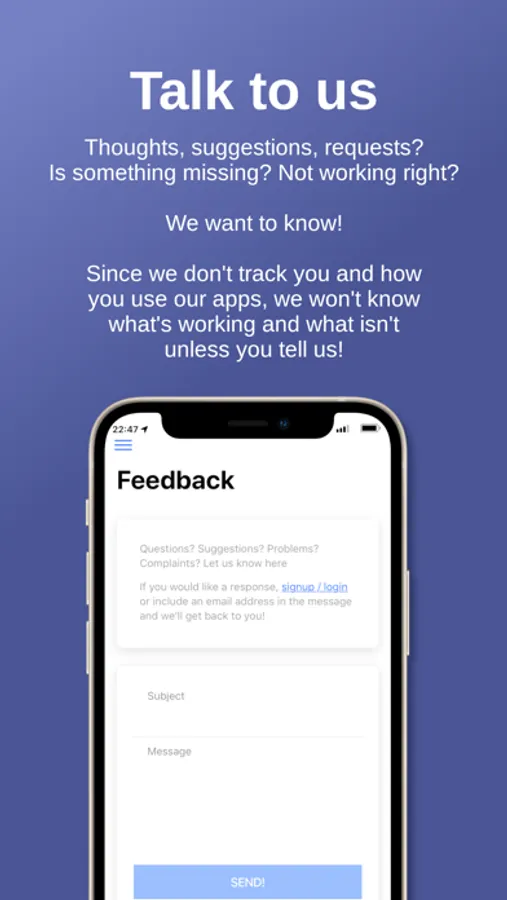 Since we don't track you in any way, we don't know what works and what doesn't. Use our in-app feedback mechanism to let us know what you think!