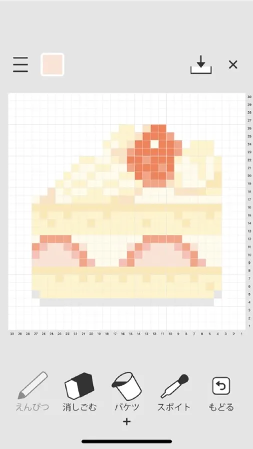 ○ペン/消しゴム/バケツ/スポイト/アンドゥ機能があります。