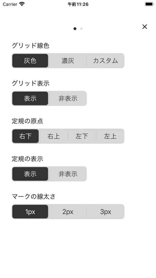 ○グリッド/定規/スタンプ線太さ等の表示設定付き