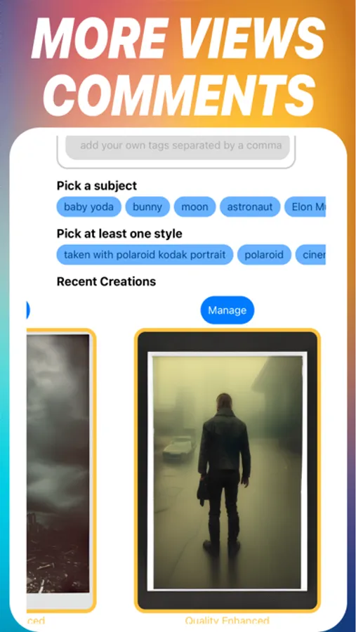 From futuristic scenes to abstract art, graphic designs, and humorous illustrations, Morph empowers you to explore your creativity without limits. Generate consistent, visually appealing content, explore new styles, and create fresh lock screens or backgrounds that truly express your personality.