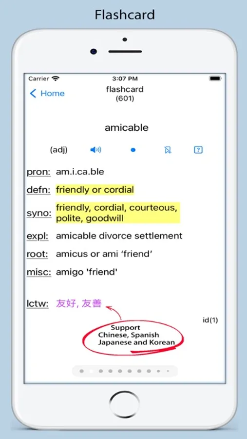 This is a vocabulary-learning app for SAT words. It consists of 600 vocabulary flashcards. Each flashcard contains the definition, audio pronunciation, synonyms, usage example and etymology (root) if available. In addition, it supports multilingual which means it includes translated Chinese, Spanish, Japanese and Korean words for each vocabulary. This feature would be particularly useful for ESL (English as Secondary Language) students. Once a word is done for studying, it then can be tested in Quiz. Furthermore, it provides a Hangman word game to make it fun and challenging for students. The app is easy and intuitive to navigate. Also, the flashcard information is concise and easy to read.