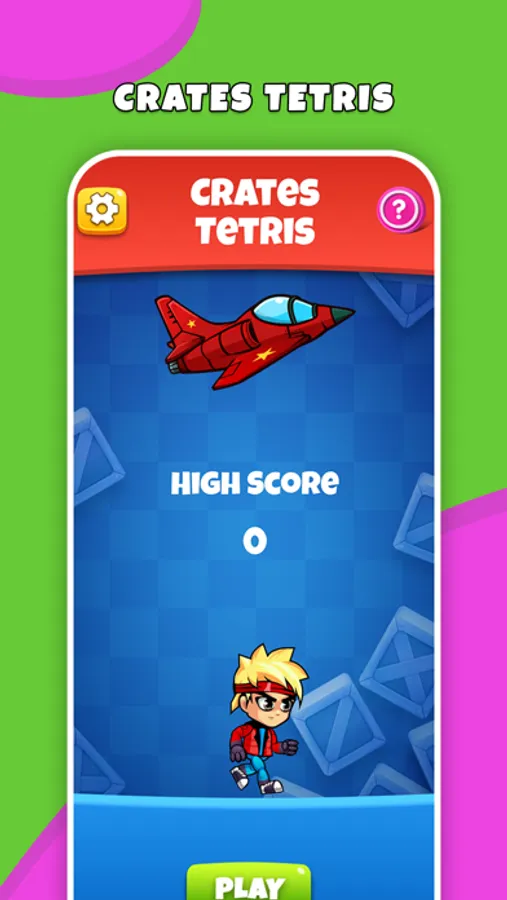 A tetris game but with a player to control and move around to place the crates in correct position. The bottom most line of crates will be destroyed if you align the crates and make a complete line. After 25 crates thrown by plane, you can use a dynamite power up to blow some crates around you in case you get stuck somewhere. Try to score as high as you can and create a new high score among friends.