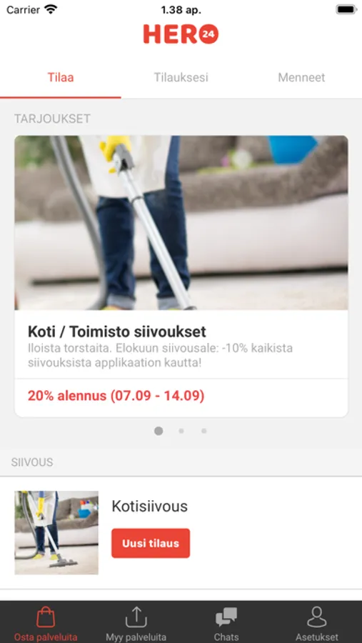 Sen sijaan, että viettäisit tunteja yritysten kilpailuttamiseen ja arvioiden pyytämiseen, Hero24 tekee tämän puolestasi. Löydät kantajia, muuttoautoja, putkiasentajia, sähköasentajia, urakoitsijoita, siivoojia, sisustus-suunnittelijoita ja paljon muuta lähialueeltasi.