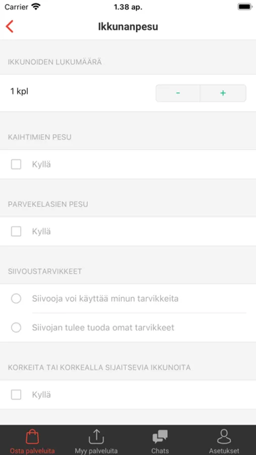 • Valitse tarvitsemasi palvelut ja lähetä tarjouspyyntö