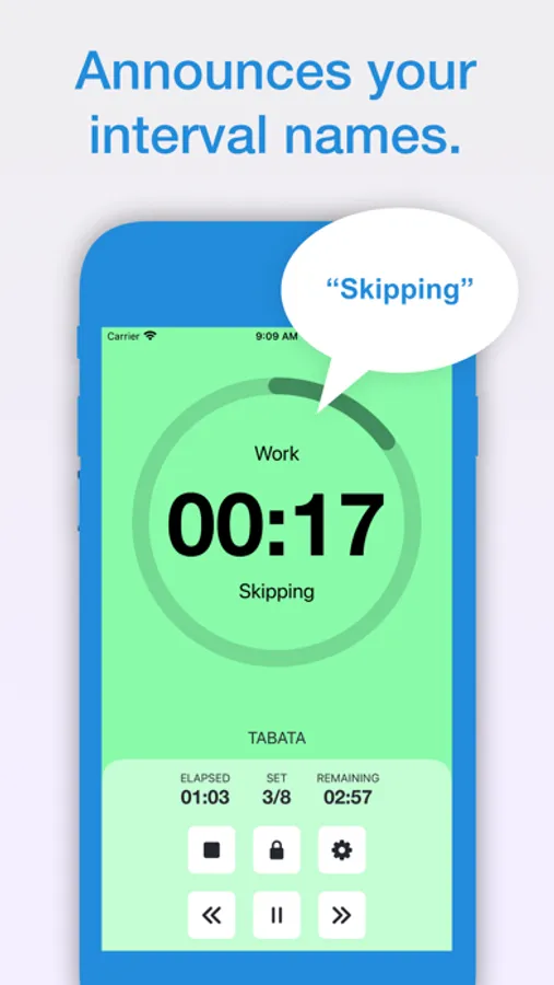 - Customise interval start sounds with speech (will read out your exercise names) or a range of sounds