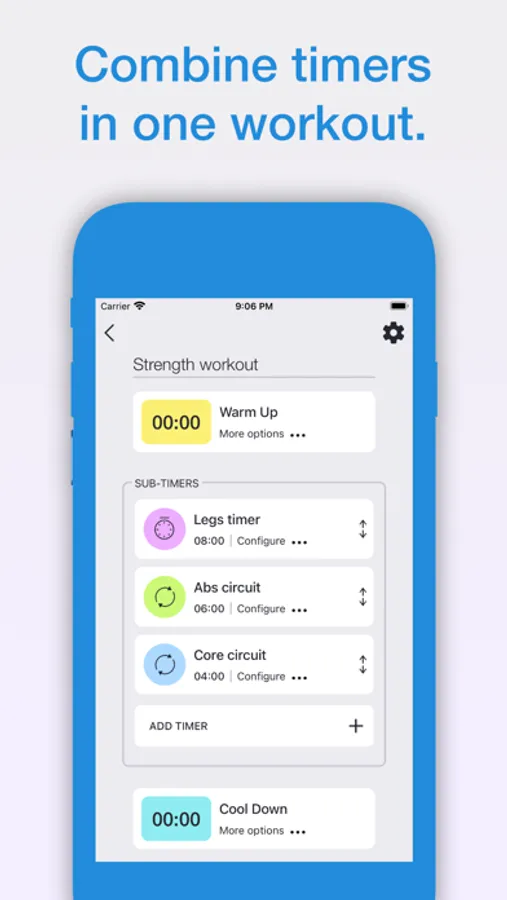 Hi Timer allows you to create your own interval workouts with ease. Get going with popular HIIT workouts like Tabata using our quick-start templates. When you need more control over your workout, choose advanced templates like Circuit and Combination. With a convenient drag and drop interface for ordering custom sequences of intervals and sub-timers, Hi Timer allows you to quickly create any routine.