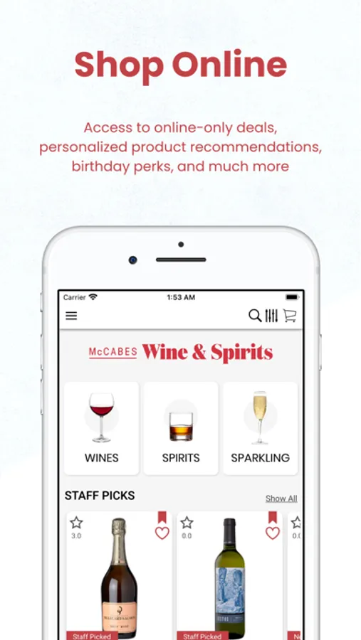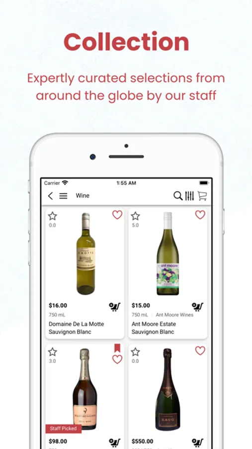 With the App you can browse for the wines & spirits available in the store, and also order a delivery or pickup.