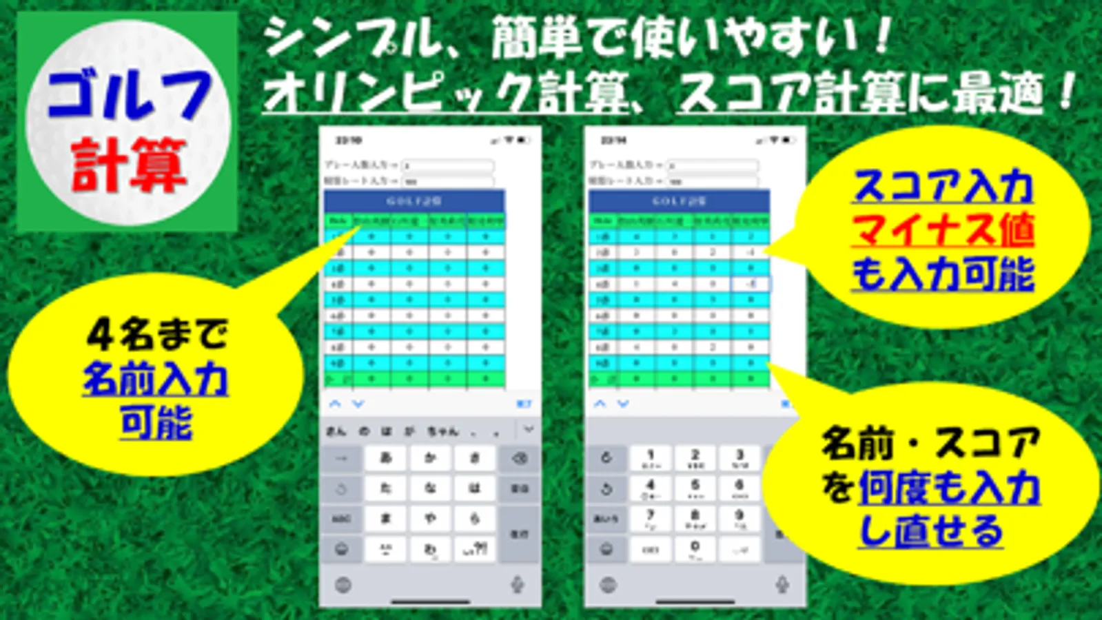 ゴルフのオリンピック計算にもスコア計算にも利用できるアプリです。