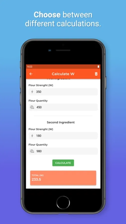 Do you want to make a dough with two different flours and want to know the final strength W? Pocket Chef will do the calculation for you.