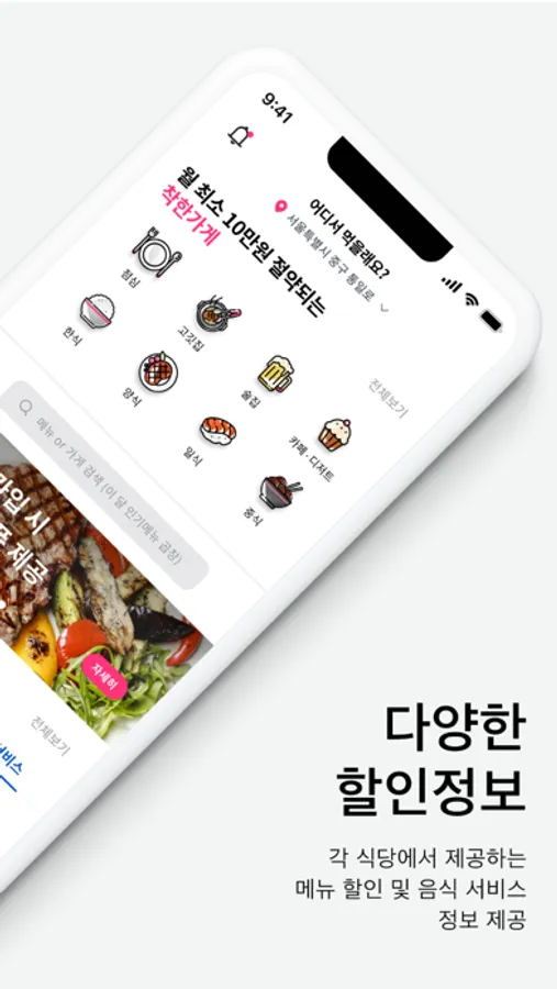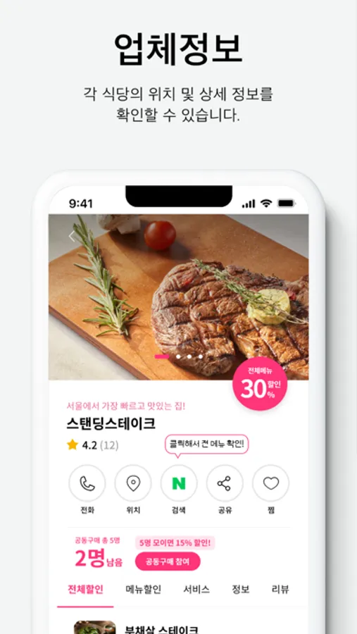각 가게에서 제공하는 메뉴할인 및 음식 서비스 정보 제공합니다.