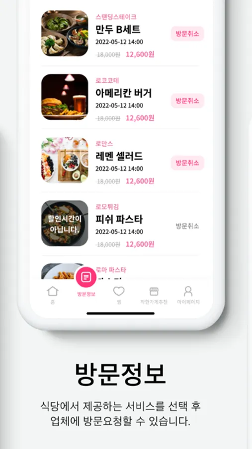가게에서 제공하는 할인메뉴 및 서비스를 예약하여 방문을 할 수 있습니다.