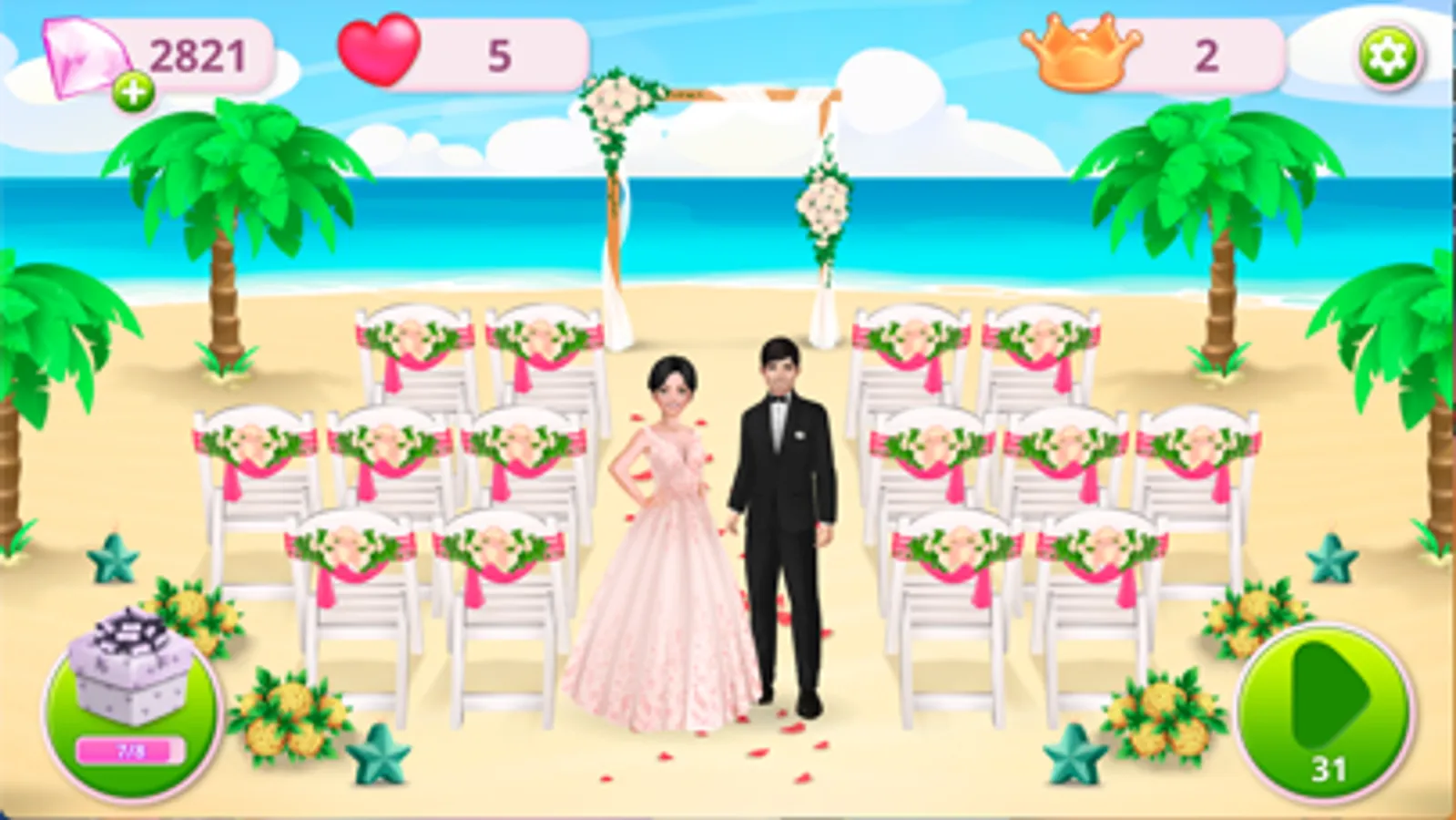 Help make the best wedding design - build a house, arrange tables, and spread tablecloths!