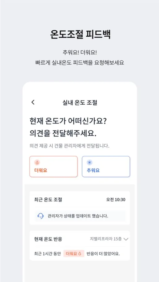 추워요! 더워요! 빠르게 실내온도 피드백 요청하세요.