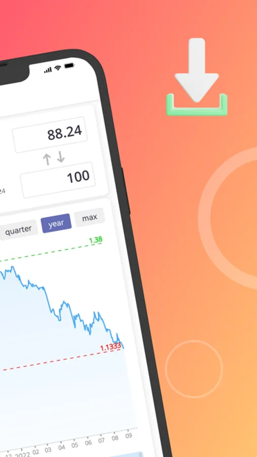 Modern stylish price conversion app. Dark and light theme, currency rate charts, built-in calculator.