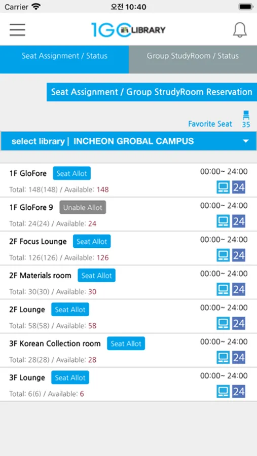 인천글로벌캠퍼도서관 좌석배정시스템 (IGC Library Seat)