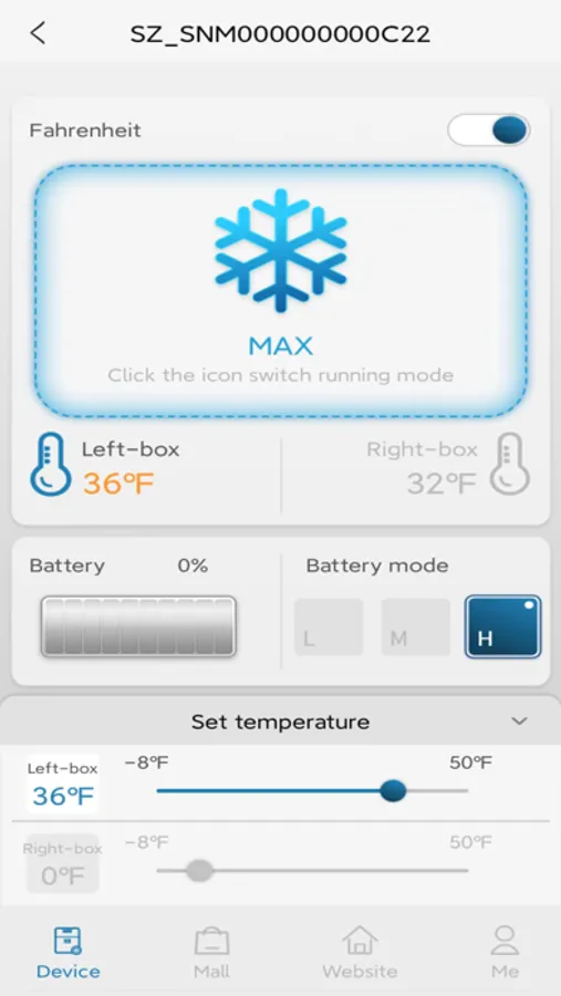 This is a car refrigerator supporting App.APP for data communication with the car refrigerator through Bluetooth. You can set the temperature, set the running mode, and set the battery protection mode through the APP. APP has user system functions, mall functions, and after -sales service functions.