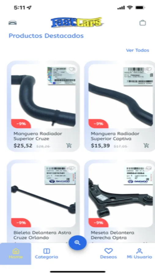 App para pedidos y tienda en linea, que ofrece FastCars a sus clientes.