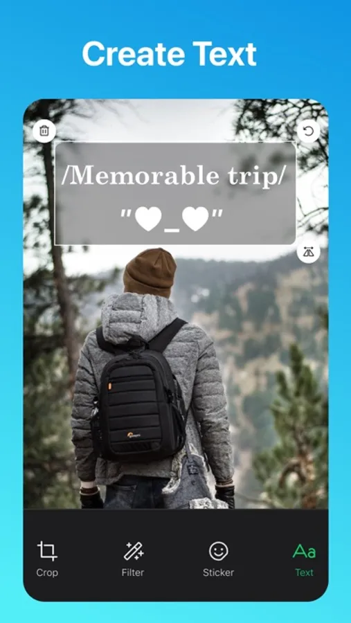 Like other basic free picture editing apps, you can crop your image in any shape and ratio. However, the function that makes your photo stand out and be one of a kind is that you can add stickers, memes, and your favorite text to the picture. The result after using SNAPIX: Retouch, Remove Object will surely make you happy.
