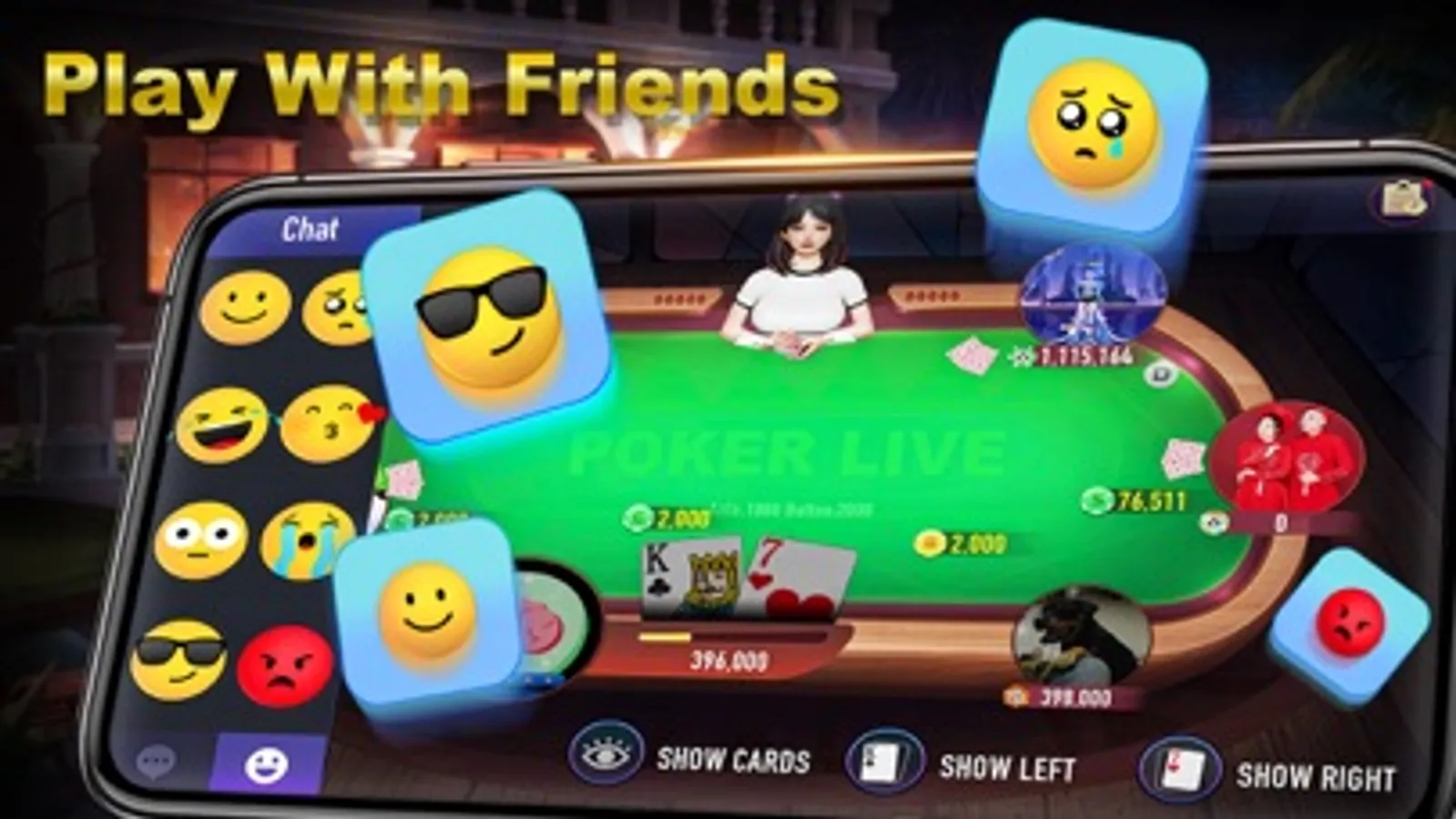 Enjoy more fun at the poker table with our handy in-game quick chat, animated emotes, and interactive props. Feel free to share your emotions with your friends and poker opponents!