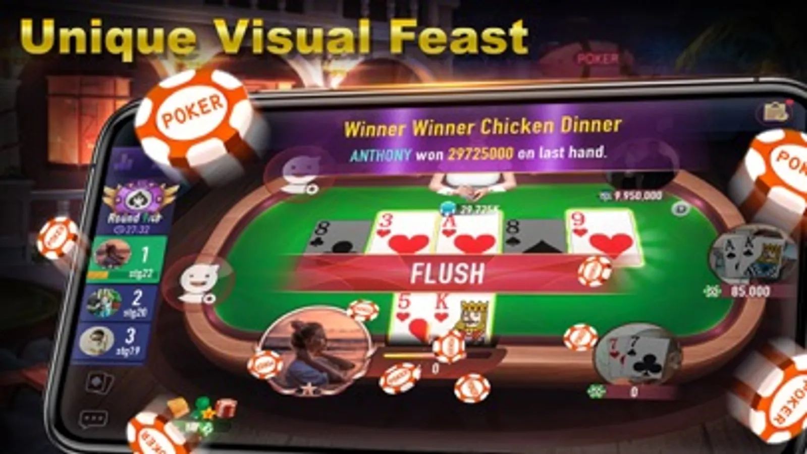 You can upload your favorite avatar as you like, show off your rank, highest league, and properties with your friends, share how many games you've played, how many games you've won, your biggest wins, your best hands, your success will come admired and amazed by everyone!