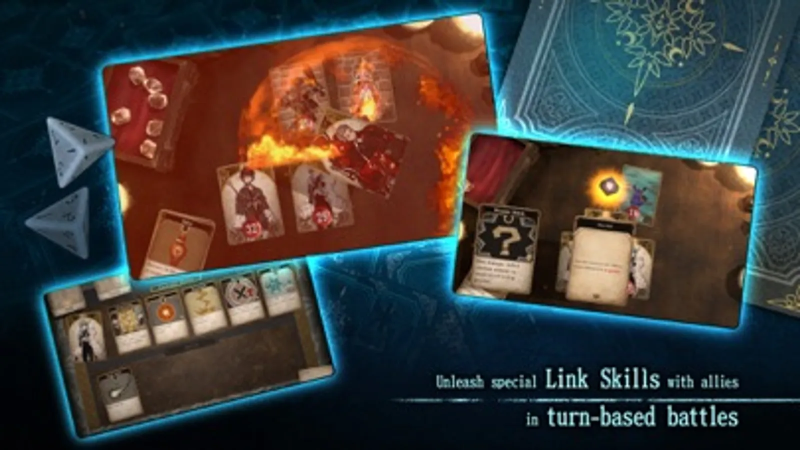 Just like during a tabletop RPG, you're guided through the story by the game master as you journey through a world where all the field, town, and dungeon maps are depicted as cards. At times, the outcome of events and battles may be determined by a roll of the dice...