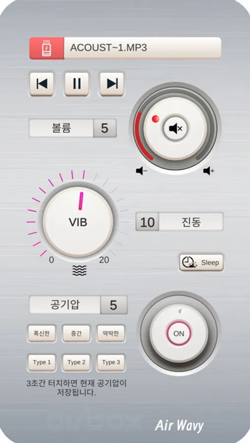 에어 매트리스 전체를 스피커로 사용하며 음악 선곡 및 20단계 볼륨 조절 기능