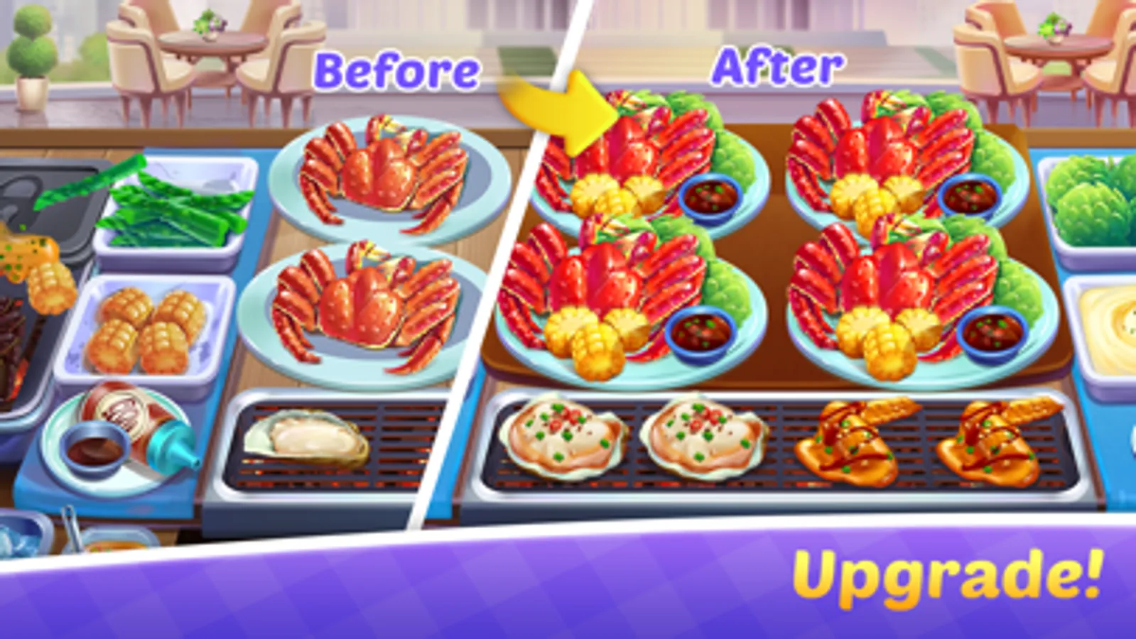 ‣ Upgrade kitchen utensils and ingredients to improve cuisine.
