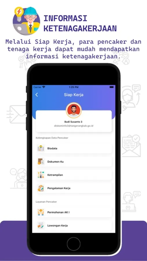 Fitur siap kerja yang berfungsi untuk mempermudah masyarakat Kabupaten Tangerang dalam mencari kerja dan membuat kartu kerja di kabupaten tangerang.
