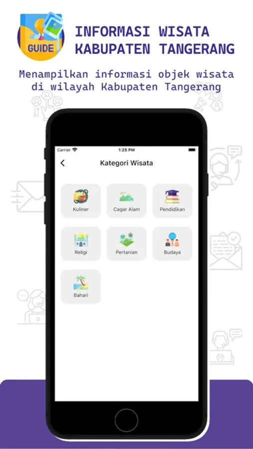 fitur yang dapat mempermudah wisatawan untuk mendapatkan informasi tentang wisata kuliner, wisata cagar alam, wisata pendidikan, wisata religi, wisata Bahari, wisata budaya, guna memberikan informasi yang wisata di kabupaten tangerang,