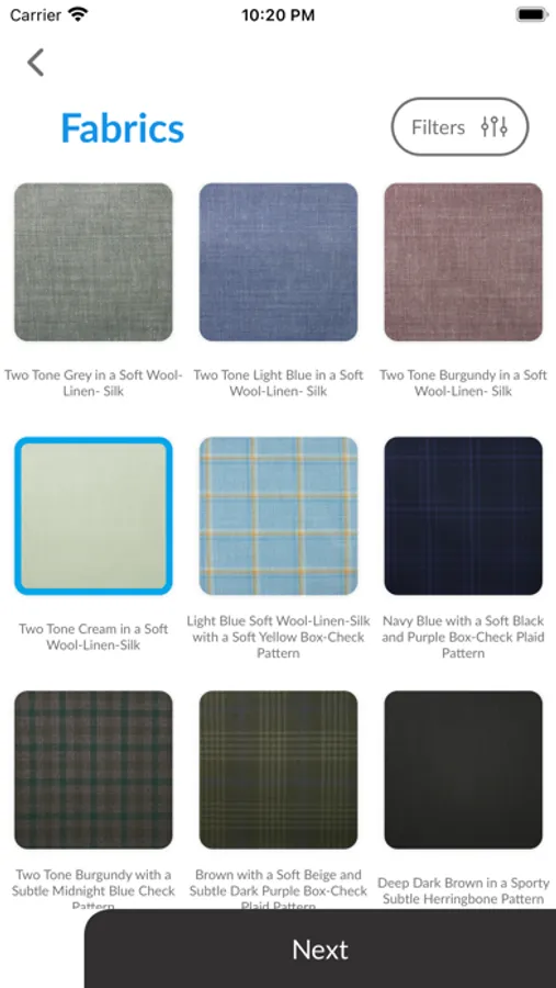 -Check out the section where all fabrics within a particular look will complement each other, regardless of the combination of fabrics selected.