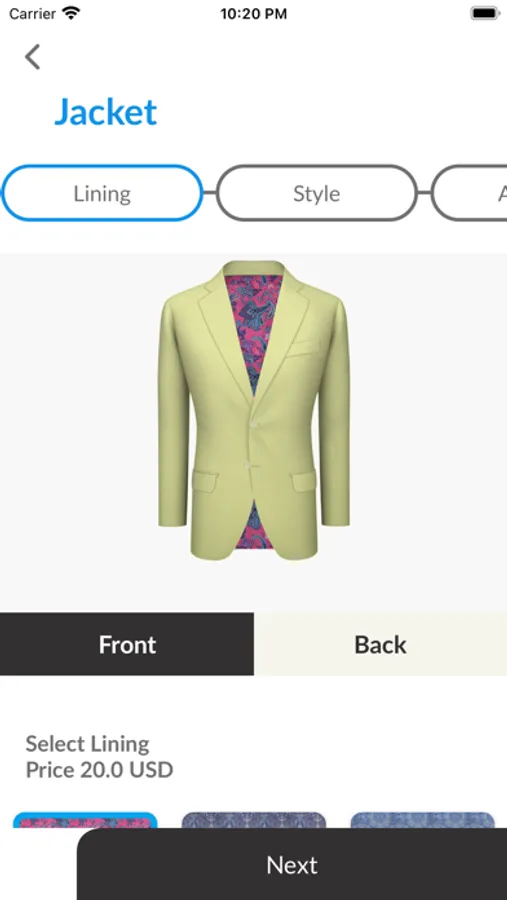 You can visualize all your customization details during the fabric and styles selection process. Our in-app body measurements scanner will give the exact measurements needed to fully custom-build your order exclusively for you.
