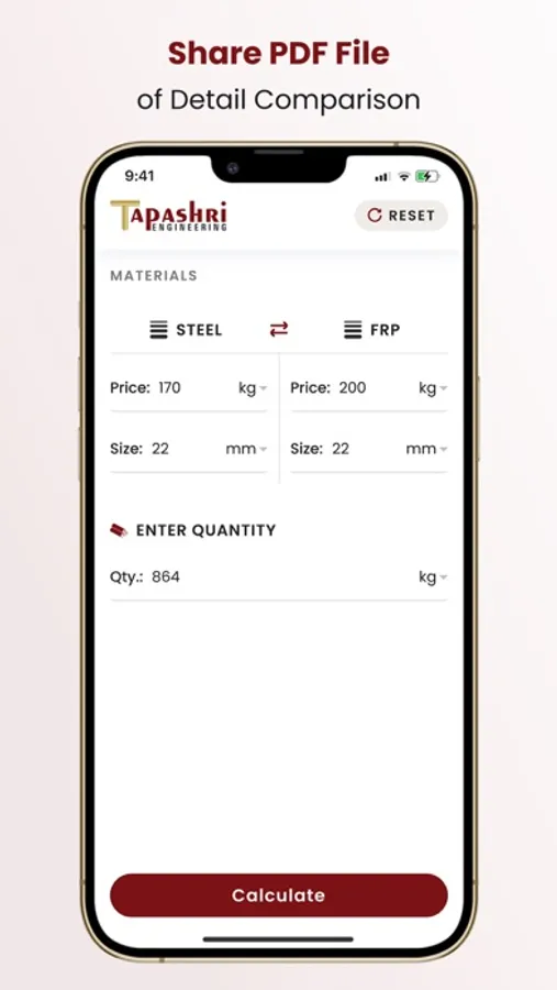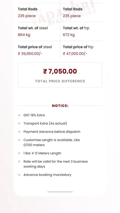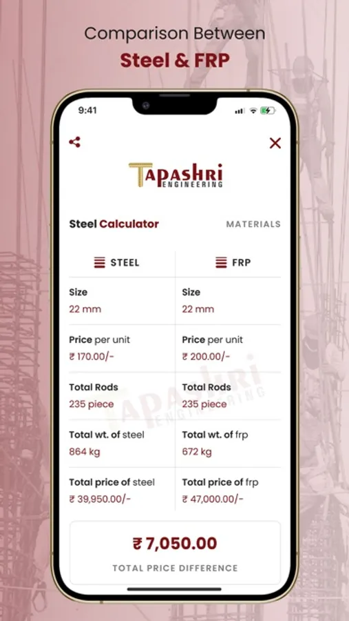 Tapashri App helps users to easily calculate and compare rates and price differences between Steel and FRP. App is easy to navigate for any user and can share comparison PDF with their respective clients.