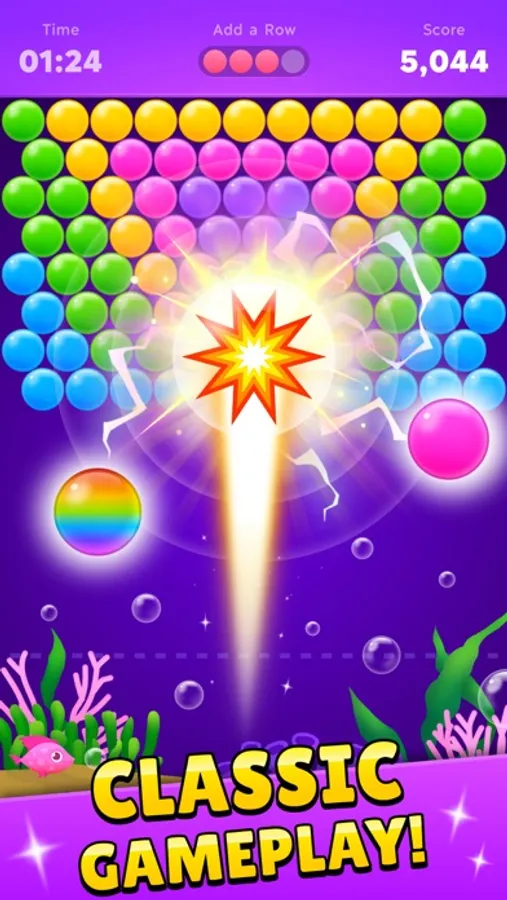 -Pop a ball to match three or more bubbles with the same color. Popped bubbles can release attached bubbles which give you a ton more points.