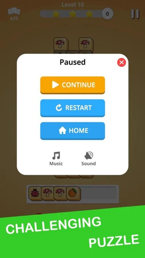 - Collect 3 identical tiles to match them and remove them from the puzzle.