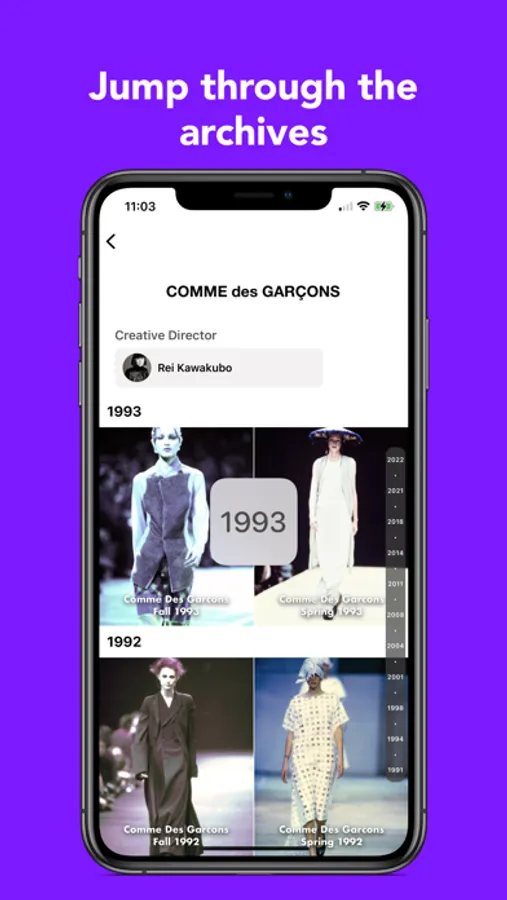 * Intuitive Interface - Flip through runway looks with a simple swipe or drag. Jump through to your favorite designer’s early years with just a tap and slide. No endless scroll, no ads, no interruptions