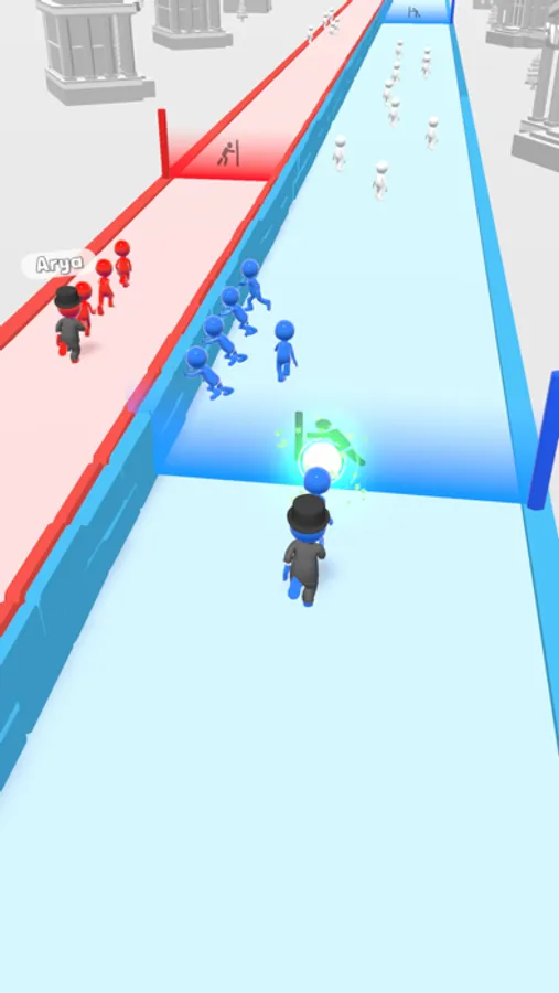 By collecting more players on the way, push the prayers and eliminate your opponent.