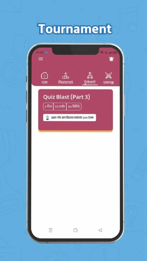 Tournament is one of its exclusive features where users get gratification by playing it throughout the timeline. Questions of the tournaments are on a specific topic or category. Tournaments are designed for specific groups of audiences such as schools, colleges, universities or any organization and the general users. A leaderboard will be generated on the highest points in the shortest possible time. Top scorers of the tournaments will be rewarded.