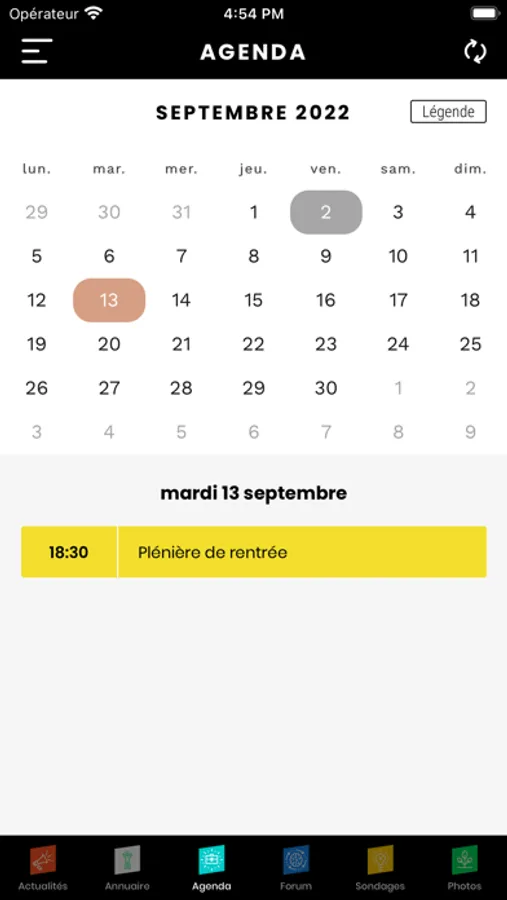 o Agenda des prochains événements