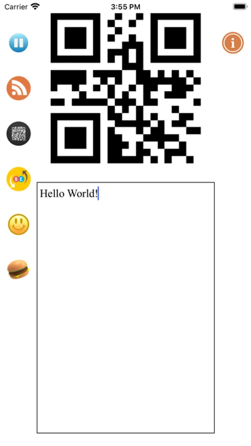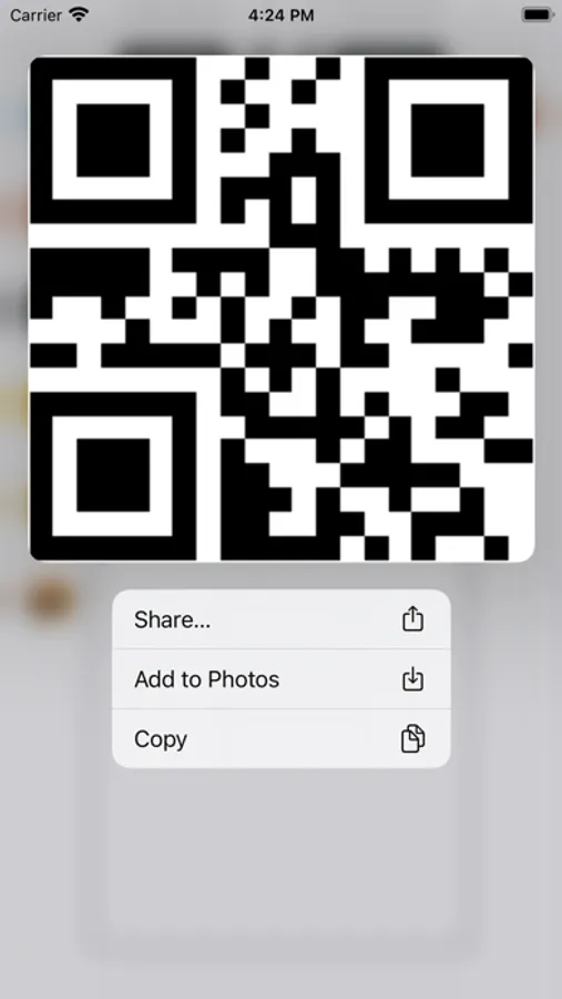- For QR codes, the "Info" button (i) is used to create a picture of the QR code. Make a long press on a QR code picture to copy it to your photo gallery or share it on social networks.