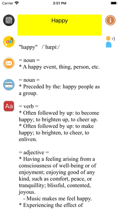 - For dictionary, the "Info" button (i) is used to get information about the word.
