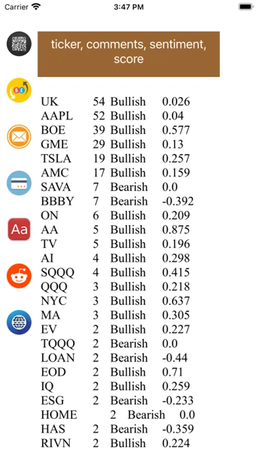 - Get top 50 stocks discussed on Reddit subeddit - Wallstreetbets. The list gets updated every 15 minutes. The sentiment reflects the daily sentiment.